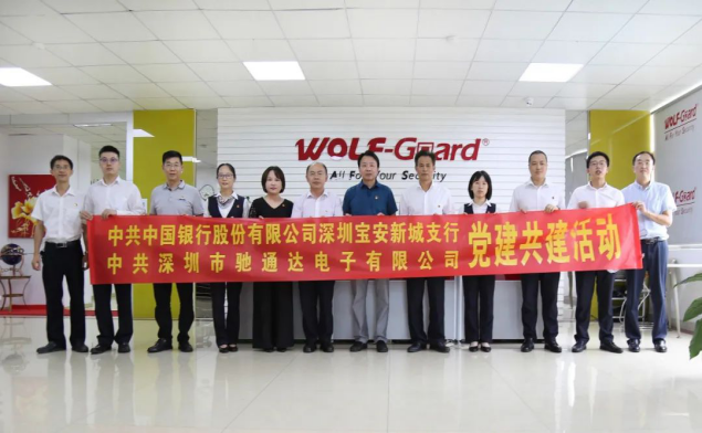 活動(dòng)期間,中行領(lǐng)導(dǎo)一行在馳通達(dá)集團(tuán)董事長(zhǎng)萬(wàn)騰馳陪同下,實(shí)地參觀考察了馳通達(dá)黨建文化建設(shè)長(zhǎng)廊和智慧安全防護(hù)演示廳,通過(guò)學(xué)習(xí)觀摩與雙向交流,進(jìn)一步統(tǒng)一了雙方黨員干部的思想認(rèn)識(shí),更加深刻理解企業(yè)文化的內(nèi)涵。中國(guó)銀行深圳寶安支行鐘俊副行長(zhǎng)對(duì)馳通達(dá)黨支部建設(shè)成果給予了充分肯定,對(duì)馳通達(dá)很早就獲得深圳市、區(qū)、街道“兩新工委先進(jìn)基層黨組織、街道先進(jìn)基層黨組織”等眾多榮譽(yù)表示贊賞。馳通達(dá)集團(tuán)董事長(zhǎng)萬(wàn)騰馳表示,馳通達(dá)黨支部已成為教育黨員職工“爭(zhēng)先創(chuàng)優(yōu)”的重要陣地,馳通達(dá)始終堅(jiān)持“把黨員培養(yǎng)成骨干、把骨干發(fā)展為黨員”的用人理念,讓馳通達(dá)黨員和企業(yè)員工時(shí)刻感受到黨的溫暖。此舉與中國(guó)銀行深圳新城支行黨支部的理念不謀而合,作為黨建結(jié)對(duì)共建單位,雙方約定將以此次聯(lián)創(chuàng)為契機(jī),加強(qiáng)黨組織與黨員溝通交流,尋求價(jià)值認(rèn)同、資源共享、優(yōu)勢(shì)互補(bǔ),促進(jìn)銀企構(gòu)建戰(zhàn)略伙伴關(guān)系,在國(guó)外疫情防控持續(xù)的情況下,對(duì)結(jié)對(duì)共建單位給予授信額度支持,有效服務(wù)銀企轉(zhuǎn)型創(chuàng)新發(fā)展,實(shí)現(xiàn)合作共贏,進(jìn)一步夯實(shí)黨建工作基礎(chǔ)。