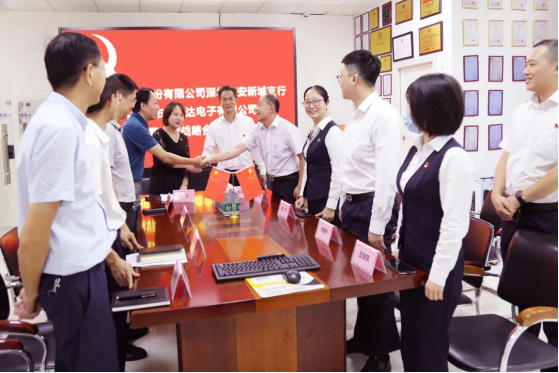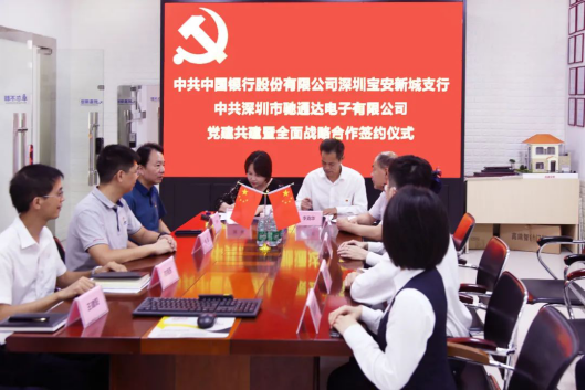 為深入貫徹落實(shí)黨中央和上級(jí)黨組織相關(guān)精神,充分發(fā)揮黨組織的戰(zhàn)斗堡壘作用和中共黨員先鋒模范作用,深化銀企合作共同提高,2020年8月12日,中國(guó)銀行股份有限公司深圳新城支行與深圳市馳通達(dá)電子有限公司黨支部隆重舉行黨建結(jié)對(duì)共建暨全面戰(zhàn)略合作簽約儀式。出席本次簽約儀式的中行領(lǐng)導(dǎo)有:寶安管轄支行鐘俊副行長(zhǎng),新城支行李克華行長(zhǎng),新城支行陳莉副行長(zhǎng),新城支行黃程林副行長(zhǎng)等;出席本次簽約儀式的馳通達(dá)集團(tuán)領(lǐng)導(dǎo)有:集團(tuán)董事長(zhǎng)、南山區(qū)人大代表萬(wàn)騰馳,集團(tuán)行政總裁、黨支部書記莫蓉,輪值ceo、法人代表熊劍,財(cái)務(wù)部經(jīng)理陳曉東等支委成員。中行領(lǐng)導(dǎo)對(duì)本次黨建共建活動(dòng)給予高度重視和大力支持,并對(duì)受疫情影響導(dǎo)致部分出口業(yè)務(wù)受阻的企業(yè)給予大力的授信額度支持,對(duì)馳通達(dá)集團(tuán)日常經(jīng)營(yíng)和平穩(wěn)發(fā)展提供了很大的幫助,此行深入基層企業(yè)傳經(jīng)送寶更是難能可貴,萬(wàn)騰馳董事長(zhǎng)對(duì)此表示大加贊賞和感謝!