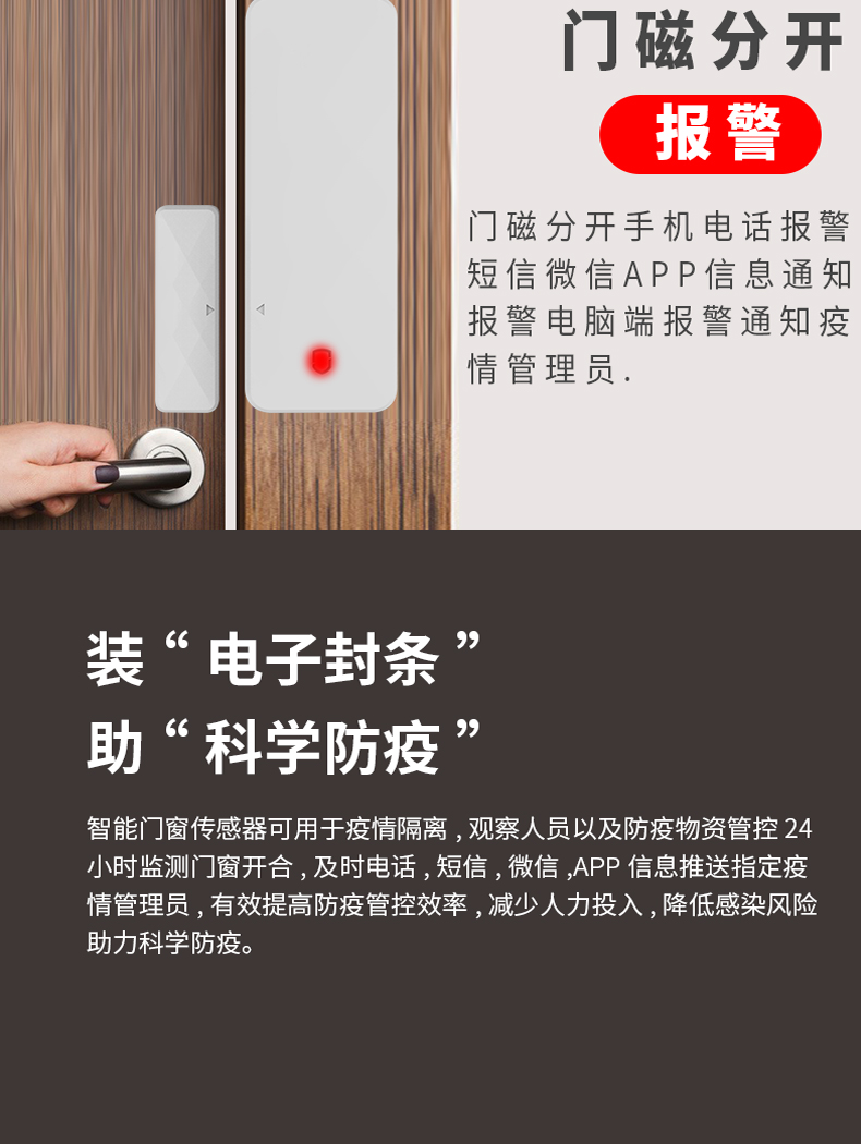 應(yīng)用:本產(chǎn)品適用于居家防疫隔離,門窗開關(guān)防盜等場(chǎng)景。