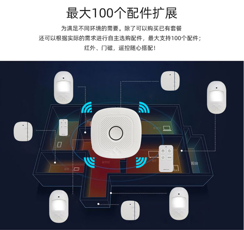 支持?jǐn)U展至10個(gè)防區(qū)、每個(gè)防區(qū)10個(gè)無線探測器;